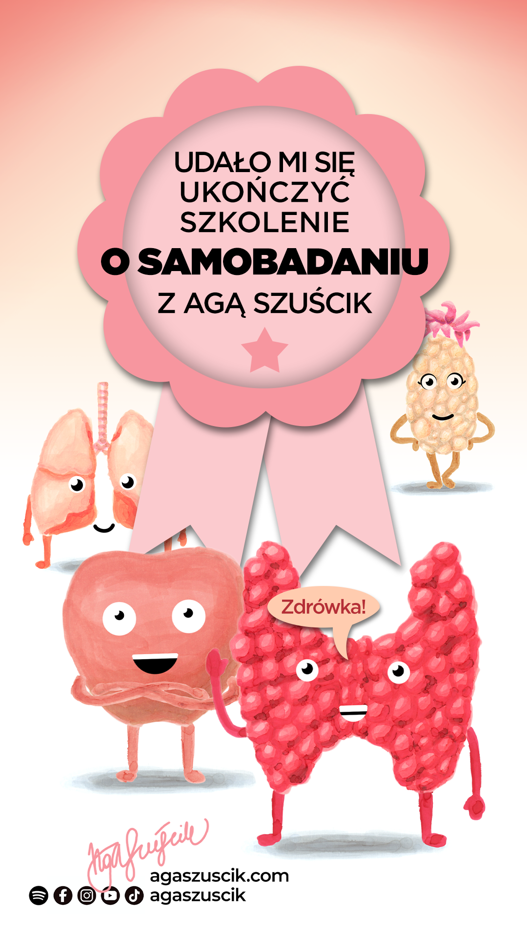 Usiądź ze swoimi bliskimi w domu. Zrób wszystkim herbaty, możesz włączyć fajną muzykę. Opowiedz tym, na których Ci zależy, o tym, co wiesz dzięki szkoleniu. Podziel się ciekawostkami i moją historią – powiedz, co było w niej superfajne i bardzo Ci bliskie, a co wydało Ci się zupełnie bez sensu. Wyjaśnij bliskim, na czym polega samobadanie.